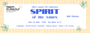 Trinity-St. Paul’s is an inclusive and Affirming congregation of the United Church of Canada, celebrating God’s presence, seeking justice and peace, strengthening faith, and nurturing the creative spirit. For 135 years, our building has served the downtown and wider Toronto area. Through scripture, prayer, fellowship, activism, and the arts, we strive to grow in faith and to follow the path set for us by Jesus Christ and the Gospel message.