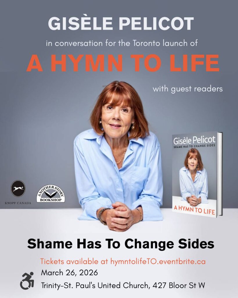 Tickets & Info: Gisèle Pelicot Toronto book launch “A Hymn to Life” Tickets, Thursday, Mar 26 from 6 pm to 9:30 pm | Eventbrite